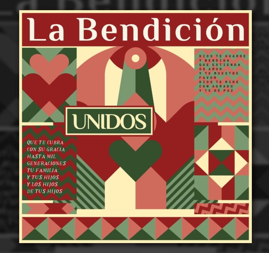 La Bendición Unidos es un esfuerzo de producción que reúne a 22 artistas de diferentes países de Iberoamérica; su letra pide la bendición para la humanidad entera, el amor y la paz para la generación actual y la familia, pero también para los hijos y los hijos de los hijos.