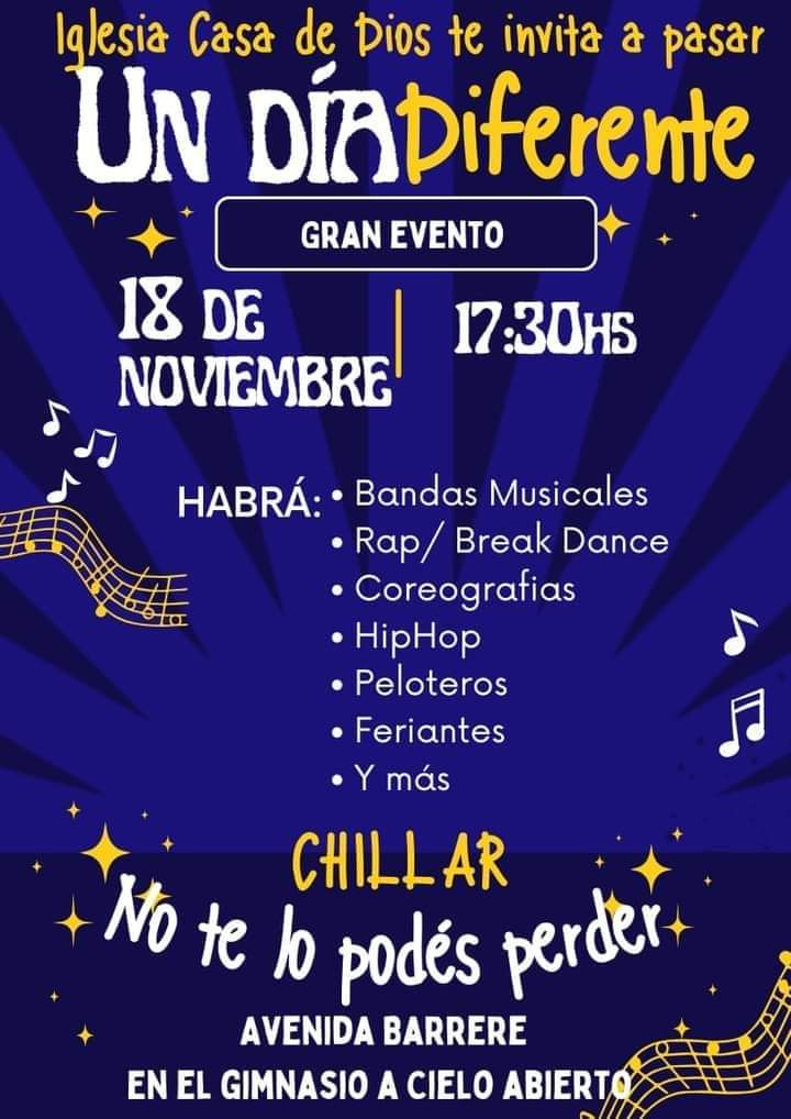 2 años ago Noticias LocalesEl próximo 18 de noviembre a las 17:30hs, la iglesia Casa de Dios de Chillar te invita a vivir una experiencia única en un evento evangelístico.