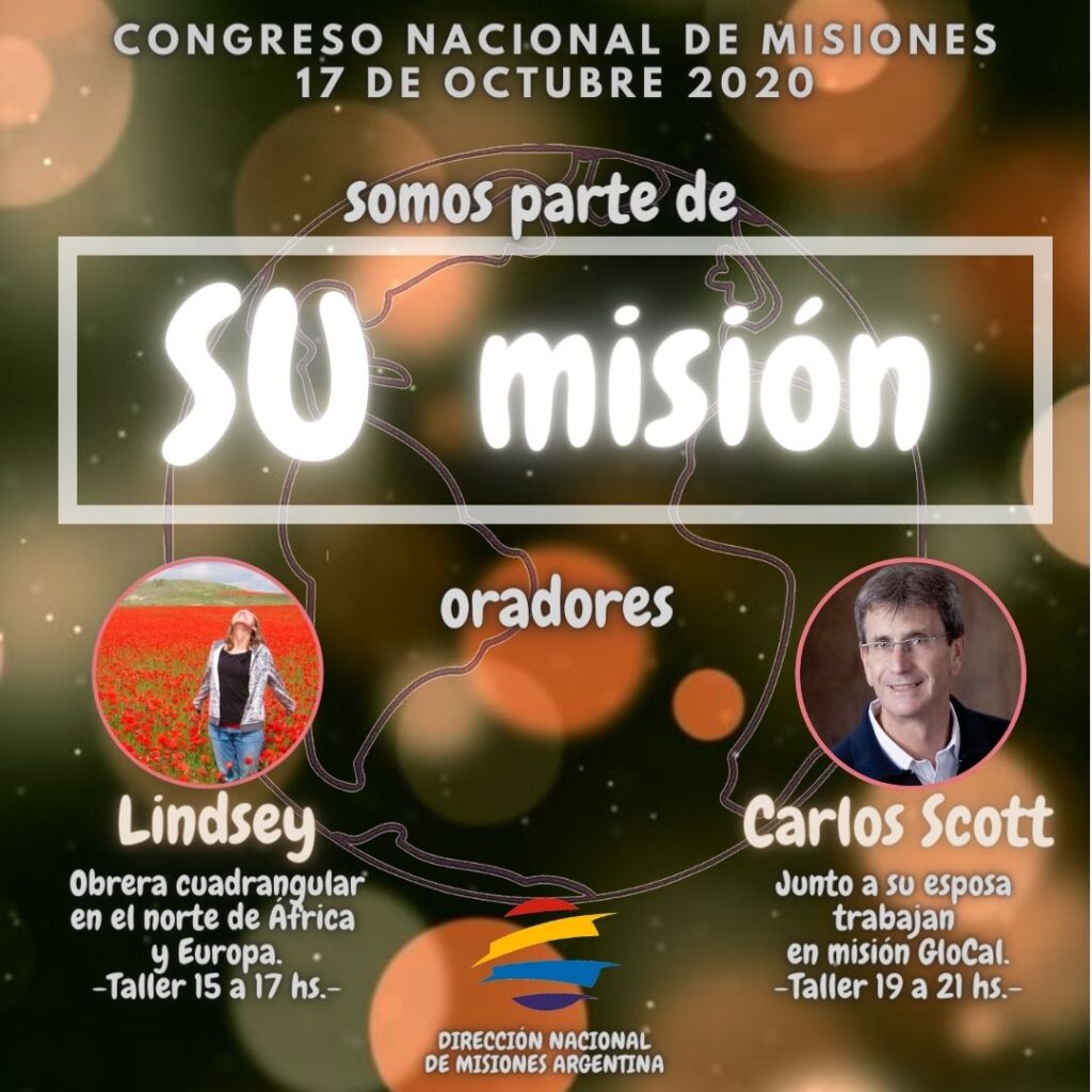 Bajo el lema “Somos parte de Su misión” se llevará a cabo este 2020 el congreso misionero dictado por la dirección de misiones de la iglesia Cuadrangular de Argentina. Dicho evento tendrá lugar el sábado del 17 de octubre del corriente año.