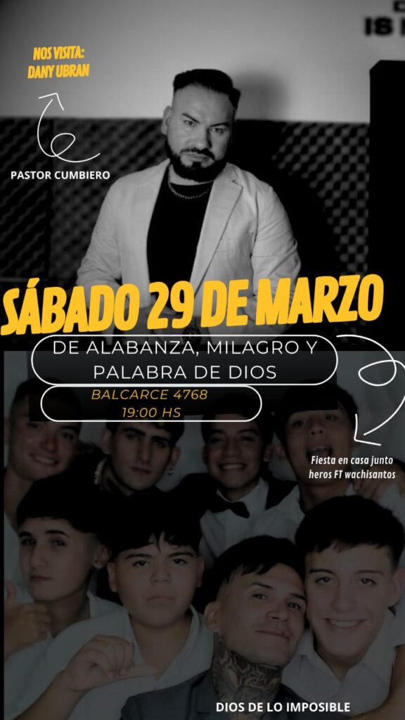 Los pastores líderes de «Dios de la imposible» y su congregación, preparan este evento e invitan a la comunidad cristiana a participar. El próximo 29 de marzo habrá una fiesta y todos podrán participar ya que es con entrada libre y gratuita.