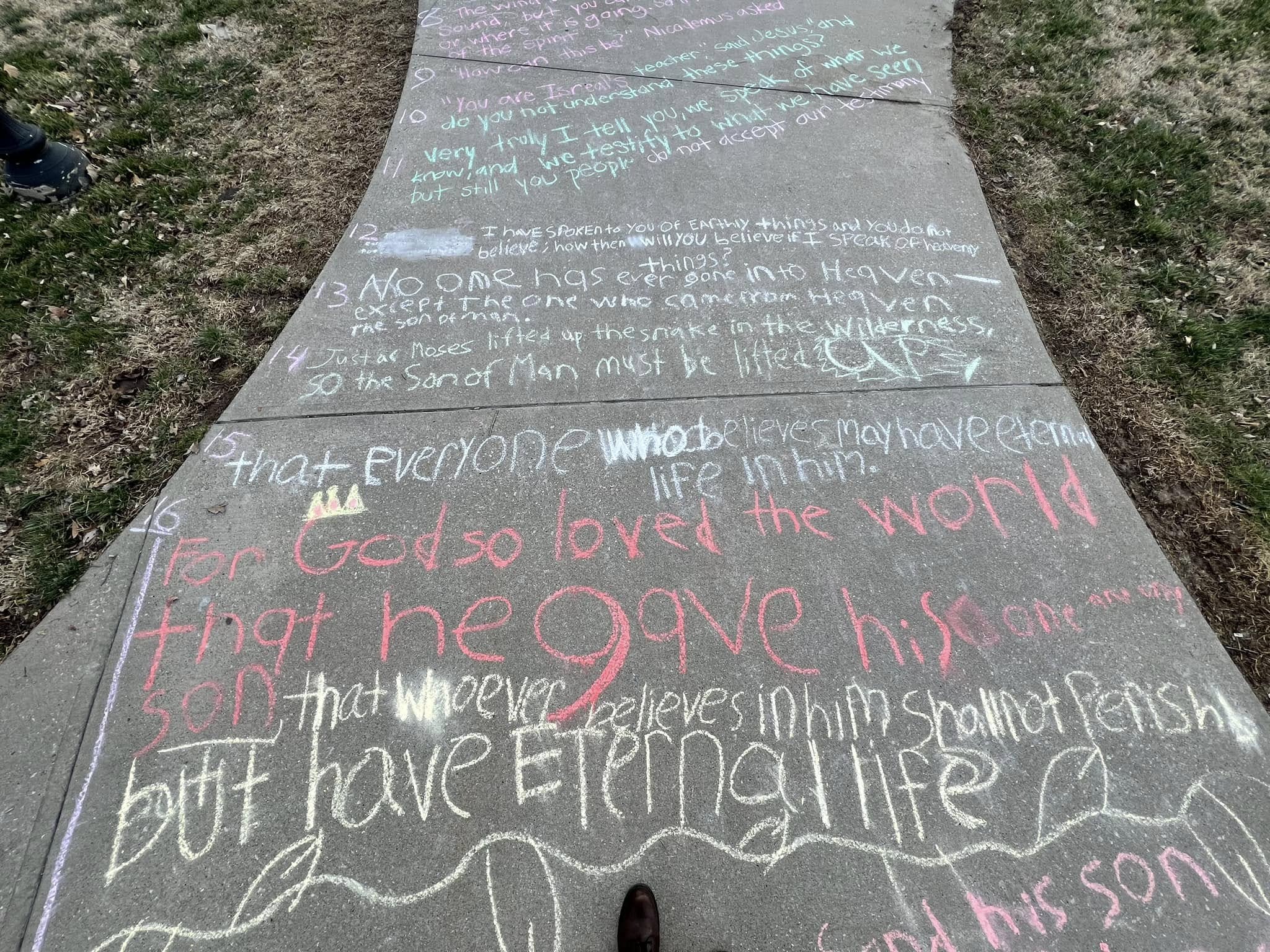 1 año ago NoticiasUn grupo de estudiantes de la Universidad de Western Kentucky, en EE.UU., llevó a cabo una poderosa evangelización. Escribieron el Evangelio de Juan en las aceras del campus con tiza para compartir el mensaje de Cristo.