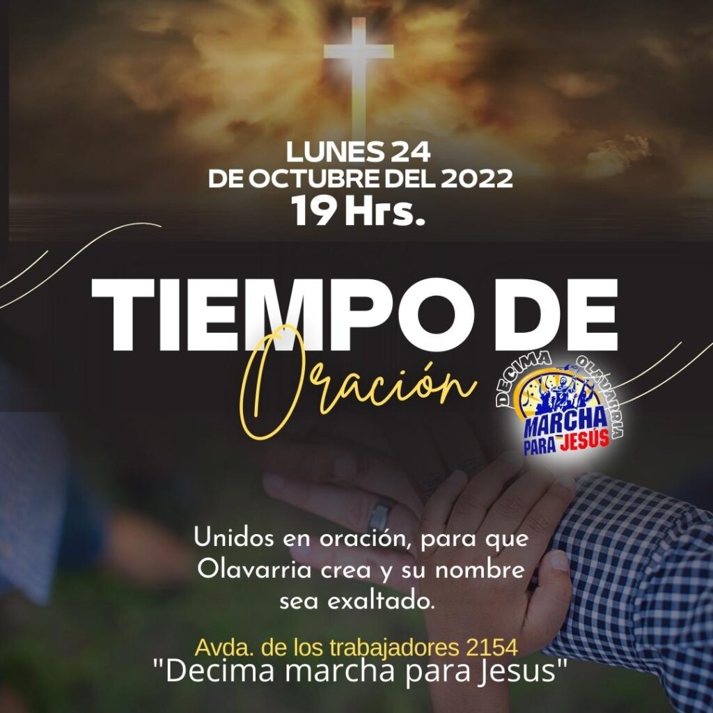 Este lunes 24 de octubre, esta programada una actividad donde personas de diferentes ministerios se reunirán para poder orar por este evento. La cita será a las 19 horas en la iglesia Cuadrangular «Nueva Vida«, (ubicada en Avda. de los trabajadores 2154). Desde la organización invitan a todos los que quieran ser parte de este tiempo de oración e intercesión.