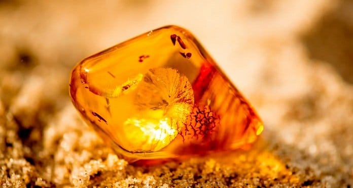 Un trocito de ámbar se dejó acariciar por las manos de éste que la sostuvo dubitativo y anonadado. Miró hacia un lado, hacia otro y no halló más que una soledad rotunda. Lo tomó, lo guardó en el bolsillo delantero con un movimiento brusco y rápido, y se marchó ligero como quien huye fugitivo.